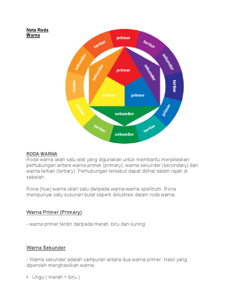 Roda Warna Dasar Yang Menjelaskan Hubungan Warna Primer Sekunder Dan Tersier Color Theory Color Wheel Tertiary Color